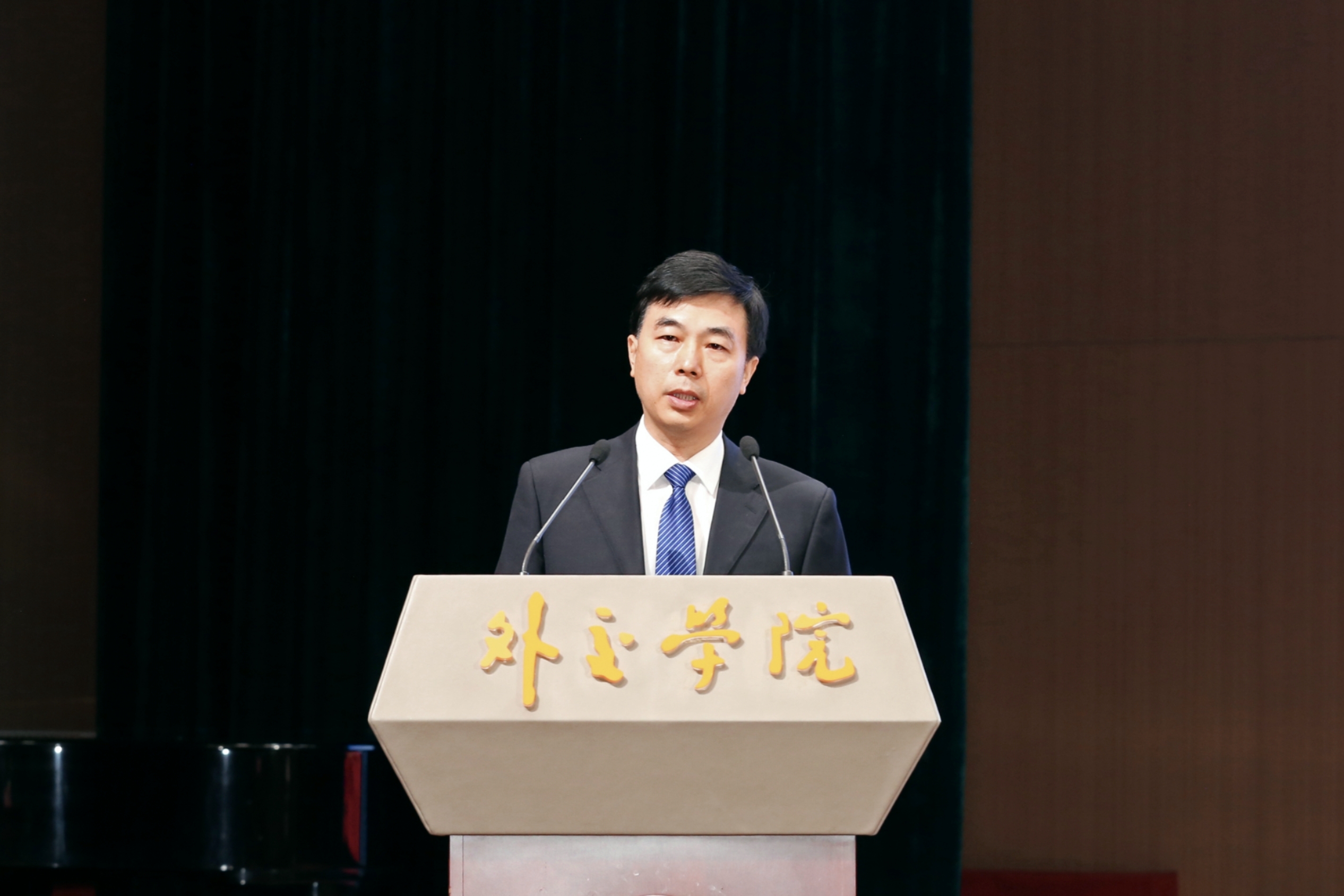 马朝旭副部长代表王毅国务委员、齐玉书记和外交部党委向新入学的同学们表示热烈的欢迎。马朝旭副部长指出,学院要从四个方面推进工作:一是要加强党的全面领导,全面贯彻党的教育方针;二是要为党育人,为国育才,以服务中国特色大国外交为己任;三是要开拓创新,努力成为习近平外交思想的积极传播者、研究者;四是要加强对外合作,讲好中国故事,服务好首都需求。同时,他也向外交学院的学生提出三点期望:一要青春向党、不负人民;二要争当复兴栋梁、强国先锋;三要胸怀天下,敢于斗争。