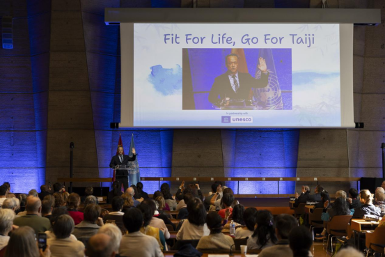 联合国教科文组织社会人文科学代理助理总干事莉迪亚·布里托、中国常驻联合国教科文组织大使衔代表杨新育、国际武术联合会秘书长张玉萍分别致辞。随后,中法两国太极拳习练者联袂表演了不同风格的太极拳流派,形式多样的习练形式,生动诠释了太极拳博大精深的技术体系与传承脉络。周庆杰教授全程穿插讲解,让现场观众既看“热闹”,又看“门道”,很好地宣介了太极拳文化。