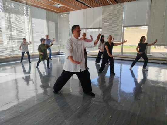 下午,在UNESCO活动室,来自阿根廷、巴西等国家的常驻团官员参加学练。周庆杰教授主讲,团组的太极拳世界冠军们辅助。目标清晰的教学内容、循序渐进的教学方法、针对性的改进和提高措施、显著的教学效果,均得到学员们的一致好评。