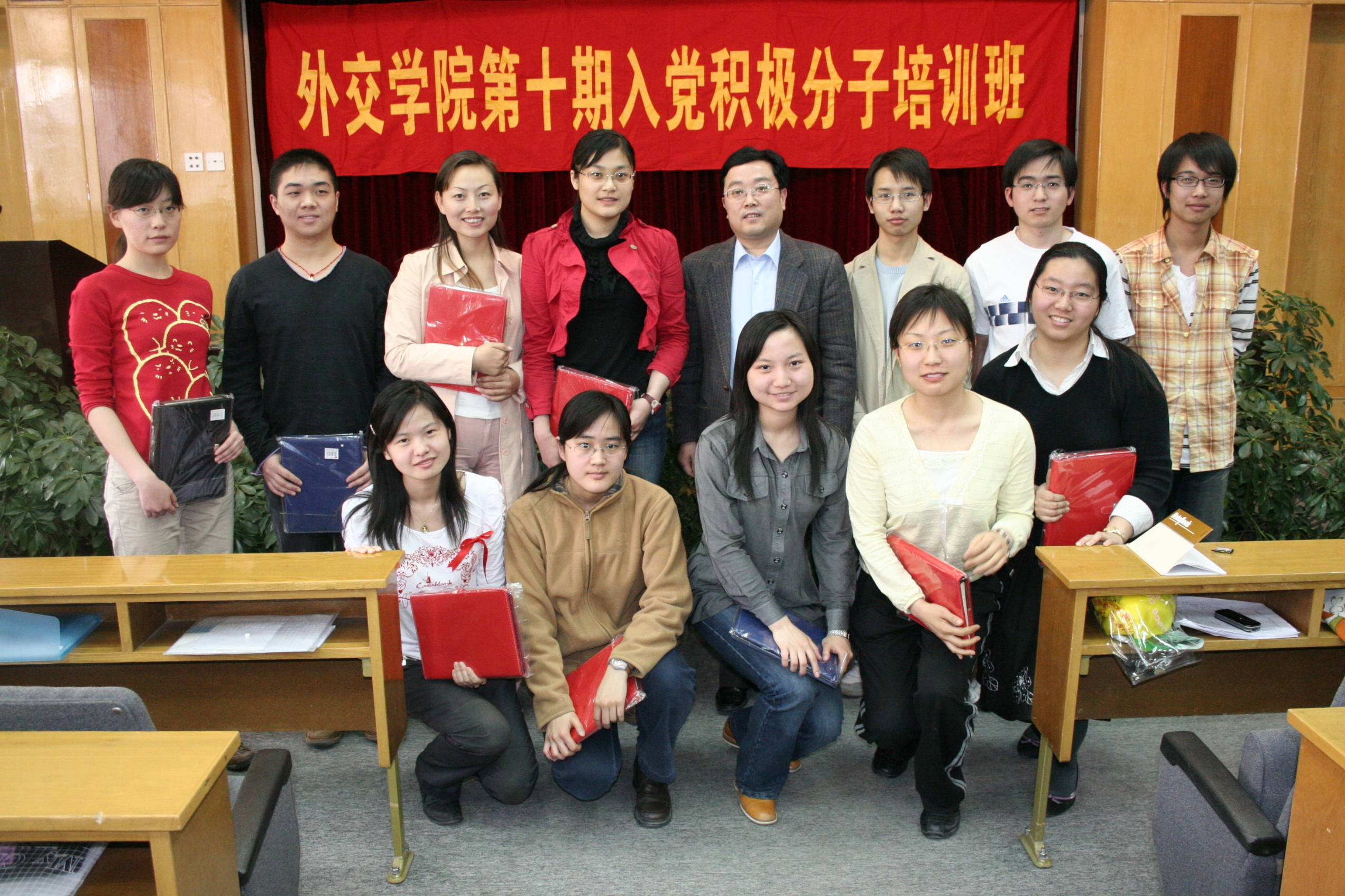 根据党章和发展党员工作细则的有关规定,按照外交部党委关于深入学习贯彻党章、科学发展观和社会主义荣辱观的部署,在院党委的领导下,在有关系(部)党总支、直属党支部和院团委的大力协助下,院党委办公室于4月11日至4月25日举办了我院第十期入党积极分子培训班。本期培训班共有105名学员(其中本科生学员80人,研究生学员22人,教工学员3人)。举行了开班式与讲座、集中学习辅导、分组讨论、观看党性教育电影和录像等校内培训活动与参观密云水库、法制公园等校外活动,学员们递交了学习体会和讨论记录,如期参加了结业测试。经综合考核,105名学员全部达到结业标准,学院决定为这105名学员颁发结业证书,同时评出12名优秀学员予以表彰。