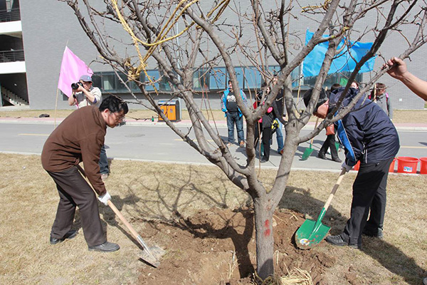 2013年3月27日下午,赵进军院长及郑启荣、朱立群、徐赤宇、王帆等院领导前往我院新校区,同八十余名教职员工参加了2013年义务植树活动,大家亲手植下了代表着一株株希望的树苗。外交学院2013年植树活动由此拉开了帷幕。绿色是不变的话题,和谐是永恒的追求。请大家携起手来,共建绿色和谐生态校园!祝愿外交学院的明天会更好!