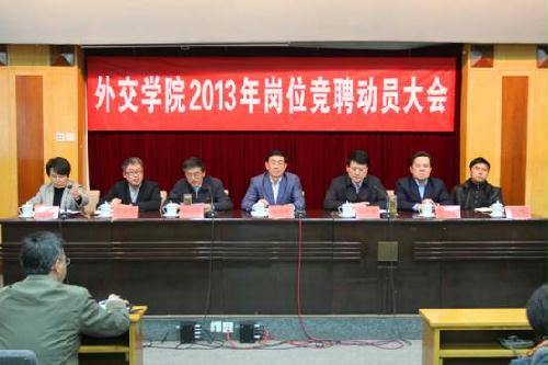 赵进军院长在讲话中首先强调了这次岗位竞聘工作的重要性。他指出,当前学院发展正处在关键阶段,双校区运行给学院发展带来了机遇和挑战,需要得力的中层干部队伍去开拓创新,建立科级以上岗位竞聘制度就是要把一批德才兼备、勇于创新和实践的优秀人才积聚到外交学院的中层干部队伍中,去谋划学院发展。最后,赵院长还对全院教职工提出了三点希望:一是要有大局意识和全局观,二是要打破论资排辈的旧观念,为年轻同志施展才华提供舞台,三是老同志要站好最后一班岗,做好传帮带工作。