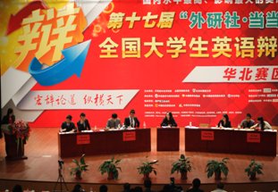由共青团中央学校部、全国学联秘书处和北京外国语大学主办,外交学院承办的第十七届“外研社·当当网杯”全国大学生英语辩论赛华北赛区总决赛于2013年10月18日至20日在外交学院沙河校区举行,共有来自北京、天津、河北、山东等省、市、自治区65所高校的130名选手参加了比赛。经过两天五轮的循环赛和决赛,最终东北大学秦皇岛分校问鼎此次比赛冠军,中国石油大学(北京)获得亚军,外交学院和中国传媒大学同时获得季军。