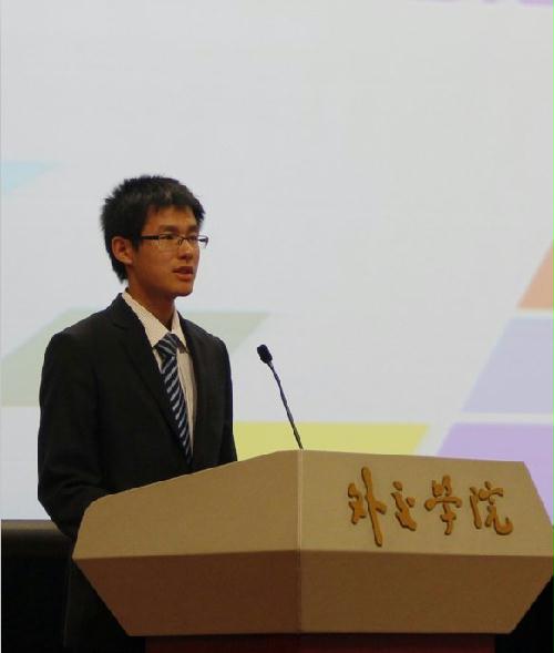 第18届全国英语演讲比赛季军、外交学院英语系学生房思寒同学也在启动仪式上与大家分享了他的英语学习经历与参赛收获。他认为,人要在学习中不断成长,而参加全国英语演讲比赛则是令他受益终生的学习机会。