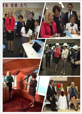 丹麦首相此次访华,主要是借助参加达沃斯经济论坛的机会促进中丹两国的政治和经贸关系,推进两国在食品安全、新能源、环境保护、旅游等领域的合作。王振玲老师主要为上述相关活动承担口译任务,主要活动包括丹麦首相会见中国食品药品监督管理局张勇局长并参加“中丹食品安全法律法规与监管圆桌会议”(开幕式致辞);与中国国有资产监督管理委员会主任张毅会晤并在“中国—丹麦创新与可持续发展高层会议”开幕式上致辞;与全国人大副委员长沈跃跃女士共同出席中国妇女儿童博物馆和丹麦欧登塞城市博物馆共同举办的安徒生剪纸展览开幕式并参观该展览等。