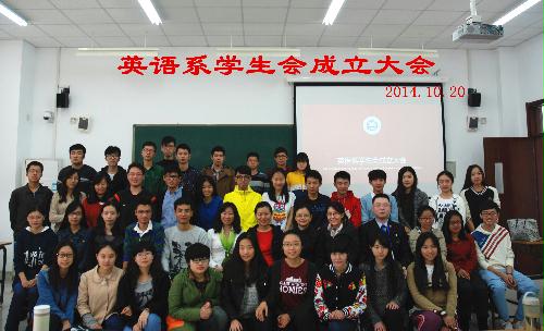 2014年10月20日,经报请外交学院院领导批准,英语系在沙河校区召开了英语系学生会成立大会。外交学院团委书记王华迪老师、英语系主任石毅老师、党总支书记胡水娟老师、团总支书记赵岑老师以及第一届英语系学生会全体成员参加了成立大会。英语系学生会是在英语系党总支、团总支的领导下,坚持以学生自我管理为核心理念,鼓励和支持学生充分发挥主人翁精神与主观能动性,进行自我管理与自我服务的学生组织,是英语系在双校区运行模式下对学生工作的积极探索和创新实践。