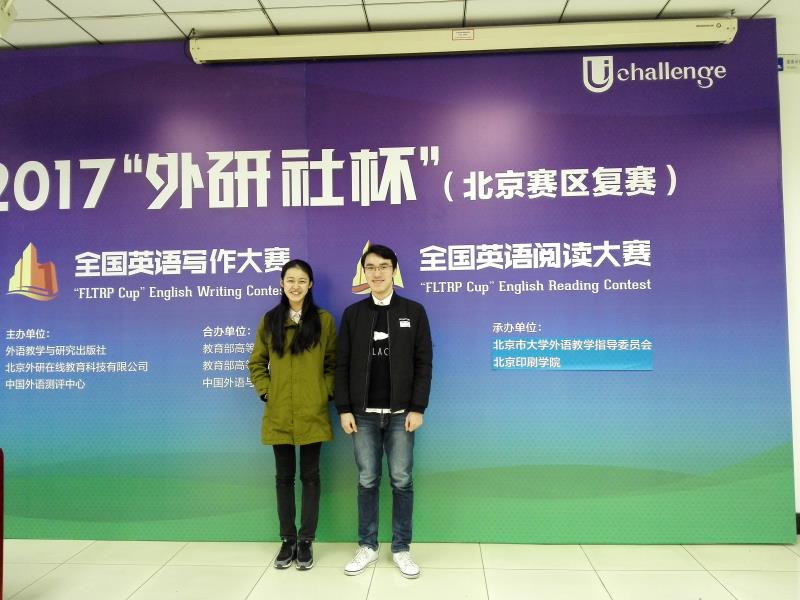 2017“外研社杯”全国英语阅读、写作大赛北京赛区复赛于11月11日在北京印刷学院顺利举办,共有200名北京市各高校选手参加比赛(阅读和写作比赛各100名)。经过两项大赛的外交学院校园选拔赛,英语系一年级本科生王笑奕和三年级本科生熊方兴参加了阅读大赛复赛,荣获一等奖;英语系一年级研究生田梦怡和三年级本科生汪楠参加了写作大赛复赛,荣获二等奖。