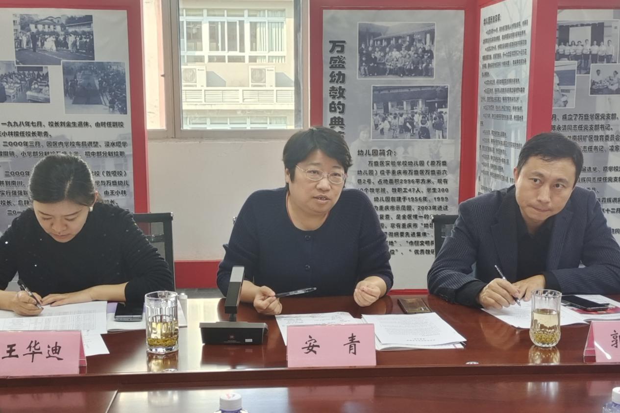 万盛小学校长邱忠维向安青副书记一行介绍研支团服务情况